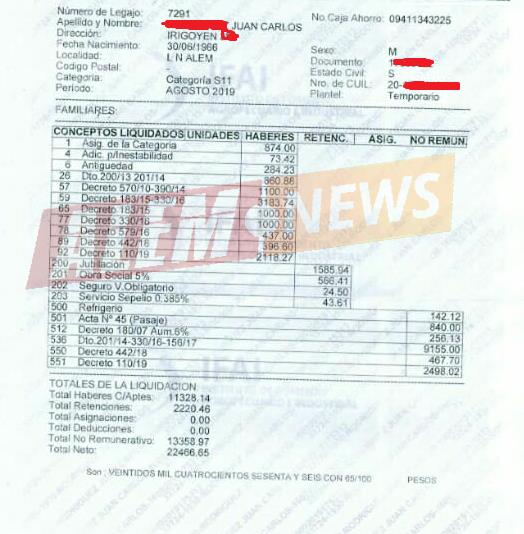 Uno de los enigmáticos casos es el de un comerciante del rubro supermercado ubicado sobre plena A. Belgrano, que, pese a no tener estudios, se las ingenió al hacerse de un sueldo que hasta agosto del 2019 era de algo más 22.400 pesos.
