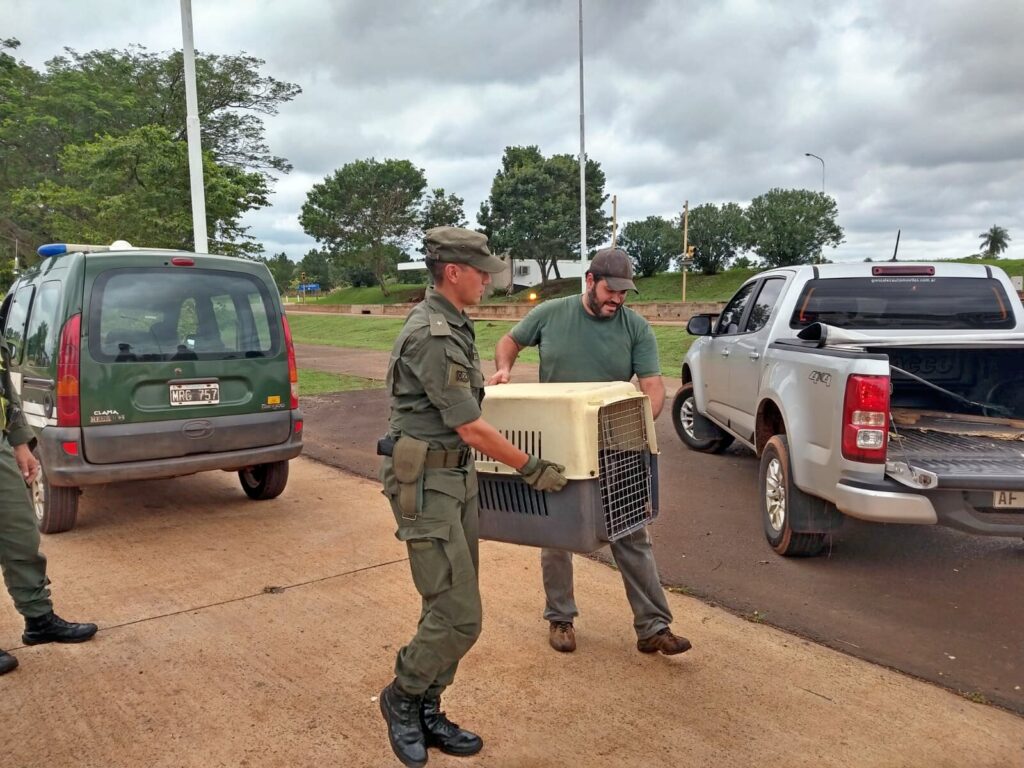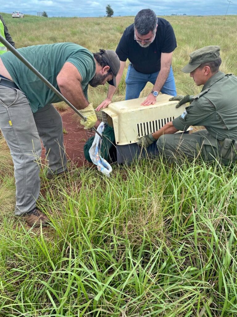 Personal perteneciente a la Sección Vial “El Arco”, dependiente del Escuadrón de Gendarmería Nacional 50 “Posadas”, quienes se encontraban prestando servicio sobre la Ruta Nacional Nº 12, en cercanías al límite interprovincial, fueron alertados por los ocupantes de un vehículo sobre un animal silvestre que se desplazaba con dificultad sobre la cinta asfáltica.