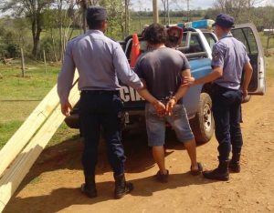 Tras rastrillaje en la zona, tendiente al esclarecimiento, se logró ubicar a una persona identificado como D. S. Ricardo Rubén (24), ddo. lote 58, km. 35, quien circulaba con una motocicleta marca Mondial, 150 c.c., transportando las tapajuntas sustraídas, procediéndose a su detención de averiguación hecho y al secuestro del rodado y las maderas, que fueron reconocidas por el denunciante.