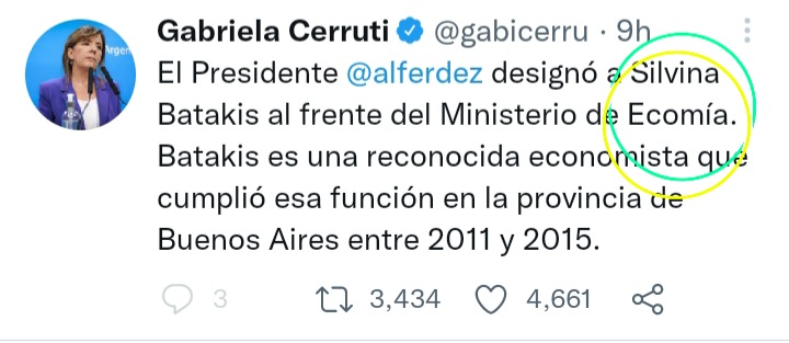 La noticia fue confirmada por un posteo de Twitter, realizado a las 22 horas del domingo, por Gabriela Cerruti, portavoz de Fernández en un posteo que hasta incluyó un error, interpretado por muchos como “un acto fallido”.